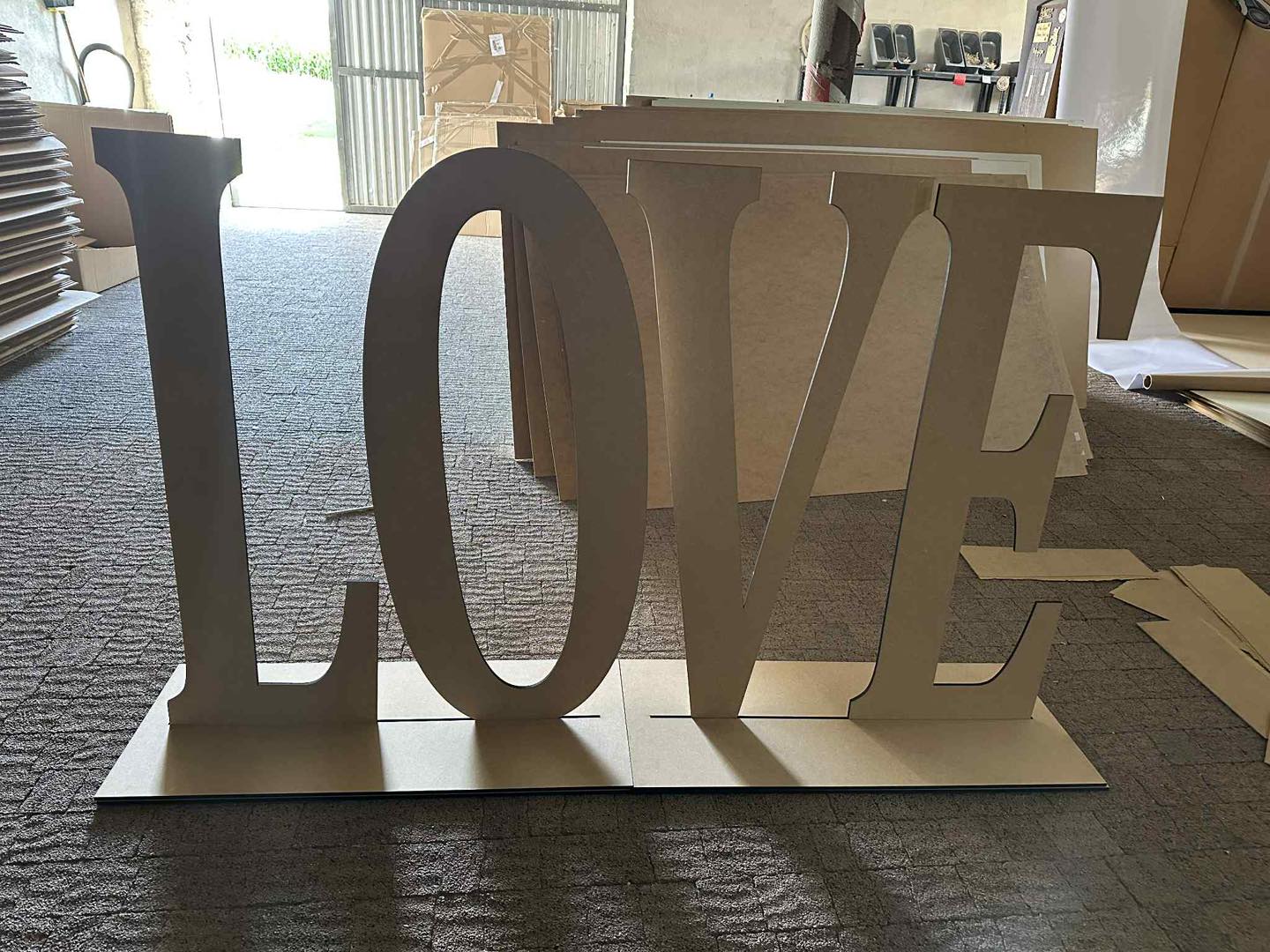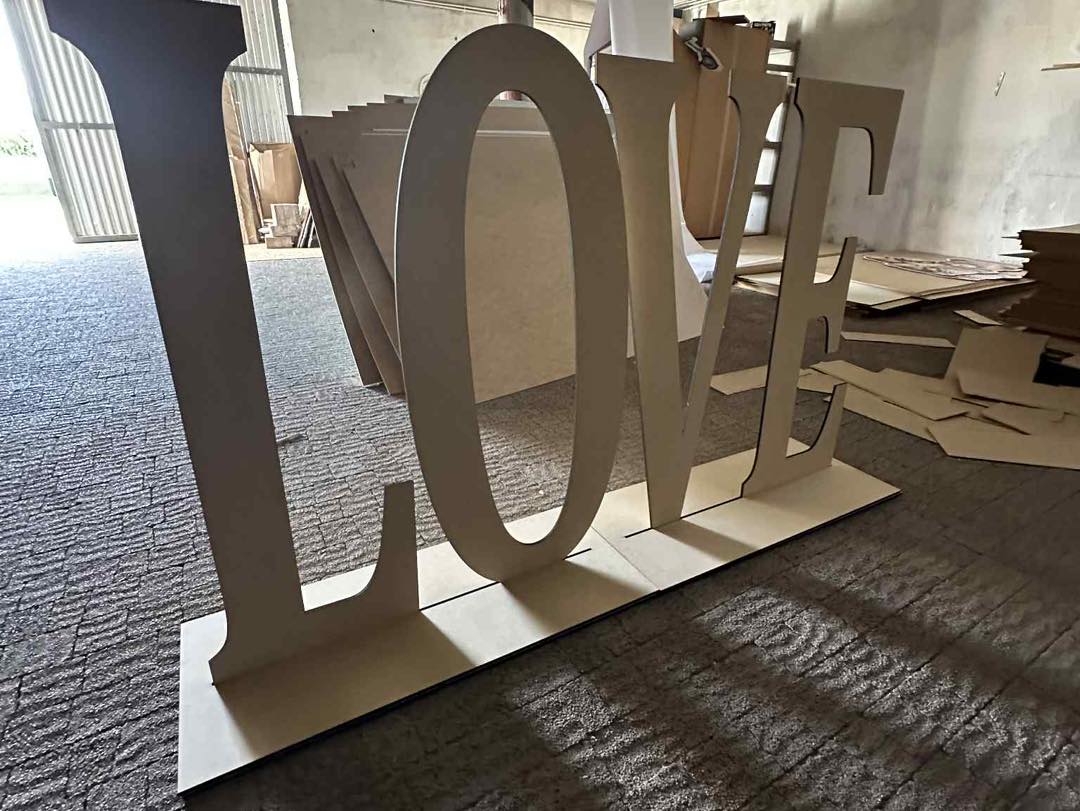 Napis Love wycięty z drewna